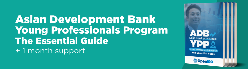 To help you face this prestigious entry point in your development career, we have prepared the ADB YPP Essential Guide, a comprehensive eBook that will not only inform you about the many particularities of the ADB YPP’s selection process but also give you useful tips to make sure you get ahead of the competition.