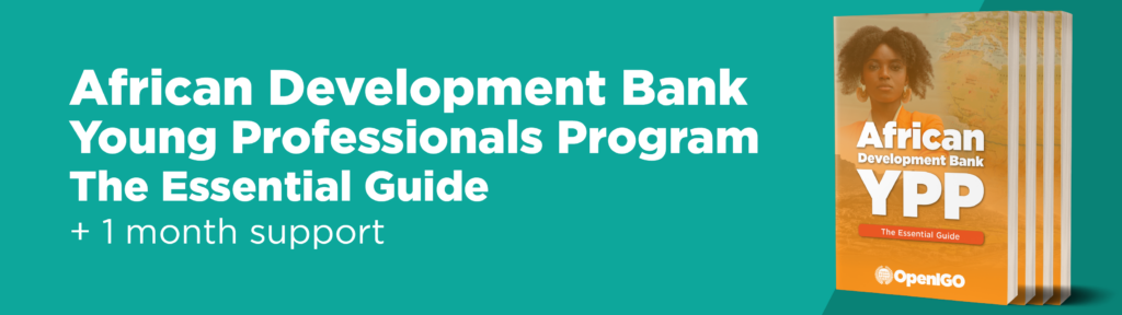 To help you face this unique leadership opportunity in your development career, we have prepared the ADB YPP Essential Guide, an eBook to get you ready to face all of the stages of this competitive selection process, making sure that you understand the important challenge of an AfDB YP in dealing with crucial issues in Africa’s development.
